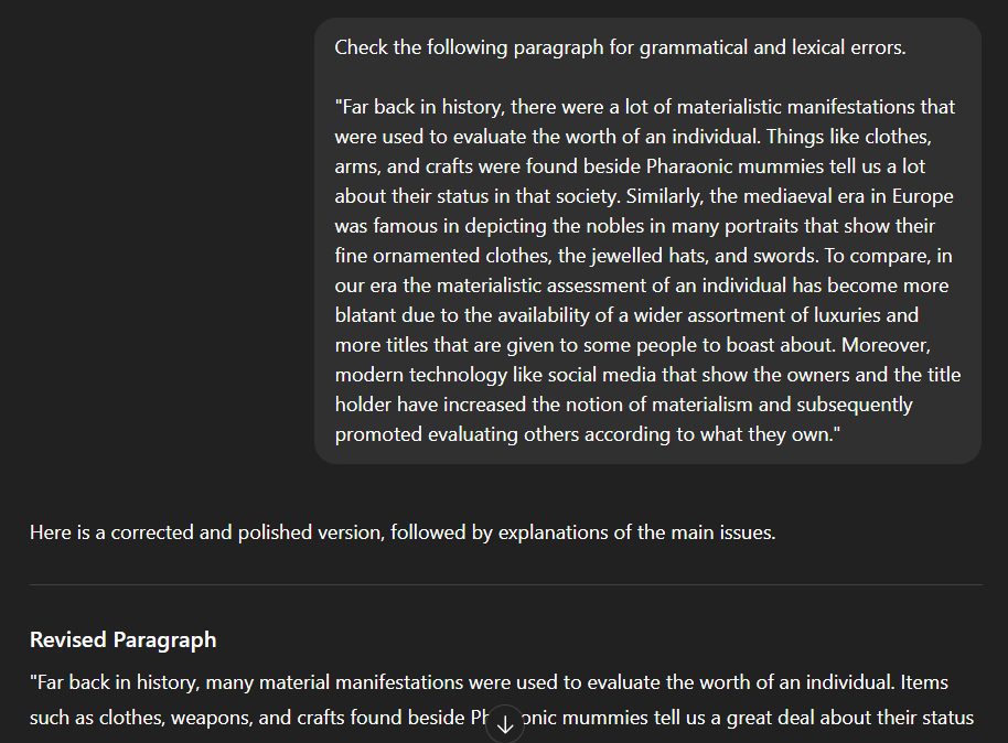 You should be careful if you are studying for a specific test like IELTS, though. Because AI is pulling its ideas from the internet, sometimes it will give you bad advice if that advice is commonly found online. Last year, someone sent me some IELTS essays that AI had corrected and they were really bad. I recognised that the AI program had tried to use lots of obscure vocabulary in order to impress the examiner but this just made the essay sound strange and incoherent. It also struggled a lot with certain parts of the marking criteria although these days it would be better due to advancements in AI systems and how they process ideas. I still would not recommend asking it to give you a band score because that requires a human intelligence that AI does not yet possess. Two years ago, there were lots of free AI essay checkers appearing and I tested them. They would assign a band 6 to a band 9 essay and tell me that a band 9 essay was worth band 6! In other words, they were terrible. However, the technology is improving rapidly and maybe they are better now.