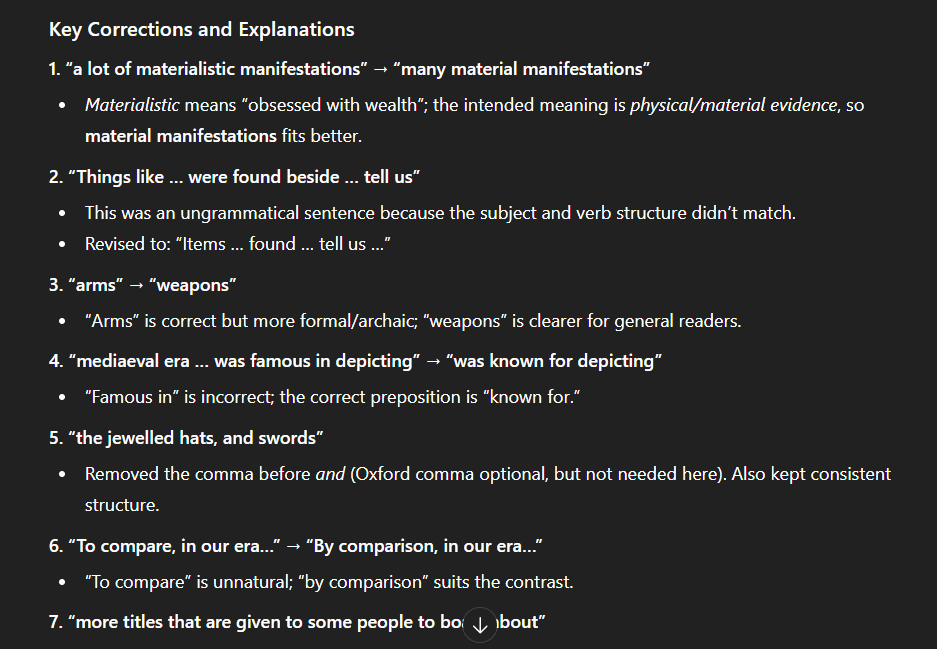You can use this with sentences, paragraphs, or whole essays. It really depends on you. With a whole essay, it might be hard to really internalise all the feedback. As you can see from my answer here, it’s already quite a lot of information to take in. A human teacher would probably be more selective and make corrections that are easier to see.